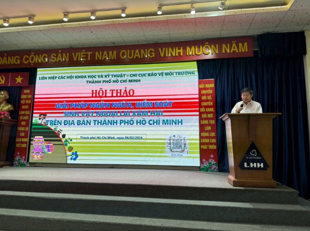 Sáng ngày 06/02/2026, Liên hiệp các Hội Khoa học và Kỹ thuật TP. Hồ Chí Minh phối hợp với Chi cục Bảo vệ môi trường đã tổ chức hội thảo với chủ đề “Giải pháp ngăn ngừa, kiểm soát sinh vật ngoại lai xâm hại trên địa bàn Thành phố Hồ Chí Minh”. Hội thảo quy tụ nhiều chuyên gia, nhà khoa học đầu ngành nhằm thảo luận và tìm ra các phương án bảo tồn đa dạng sinh học cho Thành phố.
